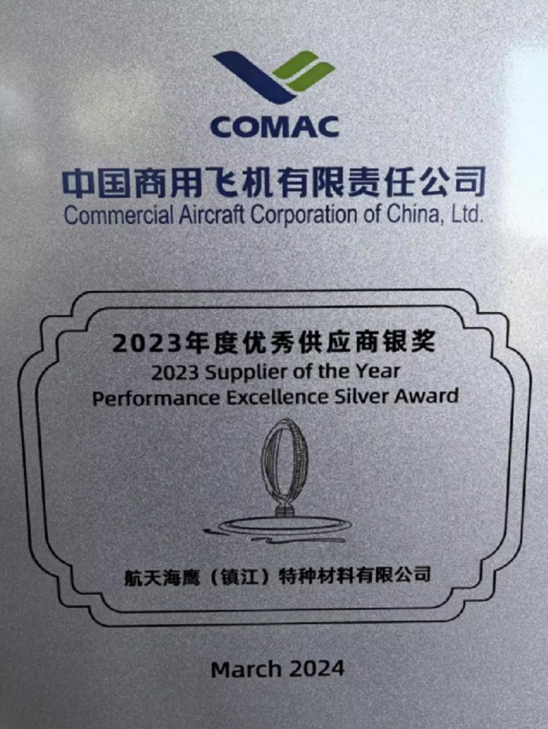 三院海鷹特材公司獲中國商飛2023年度優秀供應商銀獎