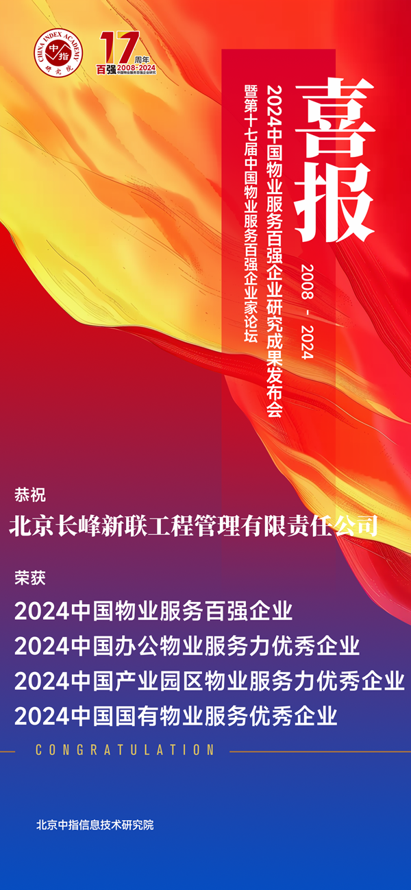 近日,在2024中國物業(yè)服務(wù)百強(qiáng)企業(yè)研究成果發(fā)布會暨第十七屆中國物業(yè)服務(wù)百強(qiáng)企業(yè)家論壇上,中國航天科工二院長峰新聯(lián)公司再次登上全國物業(yè)百強(qiáng)名單,連續(xù)榮獲“2024中國物業(yè)服務(wù)百強(qiáng)企業(yè)”“2024中國國有物業(yè)服務(wù)優(yōu)秀企業(yè)”“2024中國辦公物業(yè)服務(wù)力優(yōu)秀企業(yè)”,排名穩(wěn)步提升。憑借長陽航天城項目一體化保障優(yōu)勢,公司首次獲評“2024產(chǎn)業(yè)園區(qū)物業(yè)服務(wù)力優(yōu)秀企業(yè)”。