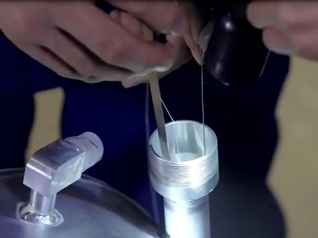 絕不能讓油標(biāo)再掉下去!李軍急中生智,讓同事用0.8毫米的鉛封絲、蠟綁線拴了一個(gè)活扣,一只手拿著U型的細(xì)鐵絲順下去,再繞過油標(biāo)提起、捆住、拽緊,再將自制工具和油標(biāo)慢慢分開。